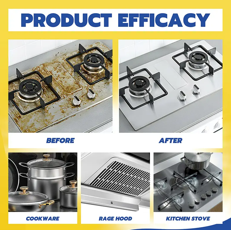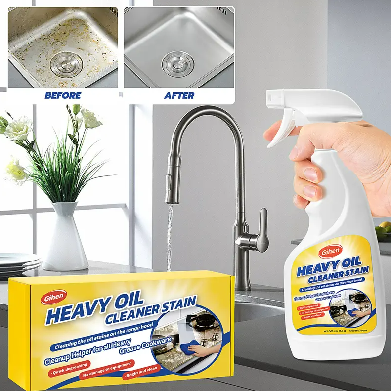მოკლედ შეასხით და დააკვირდით, როგორ ქრება წლების ნალექი ცხიმი და მტვერი წამებში. დაიბრუნეთ სამზარეულოს სისუფთავე მარტივად და უსაფრთხოდ — დაზოგეთ დრო და ძალისხმევა!