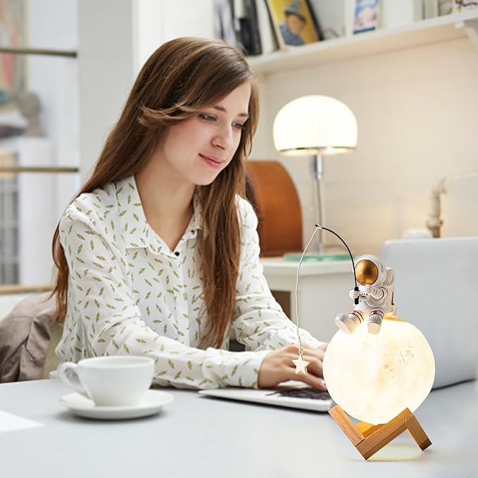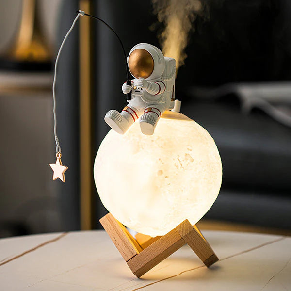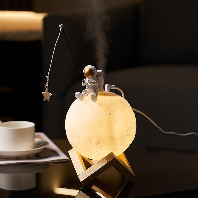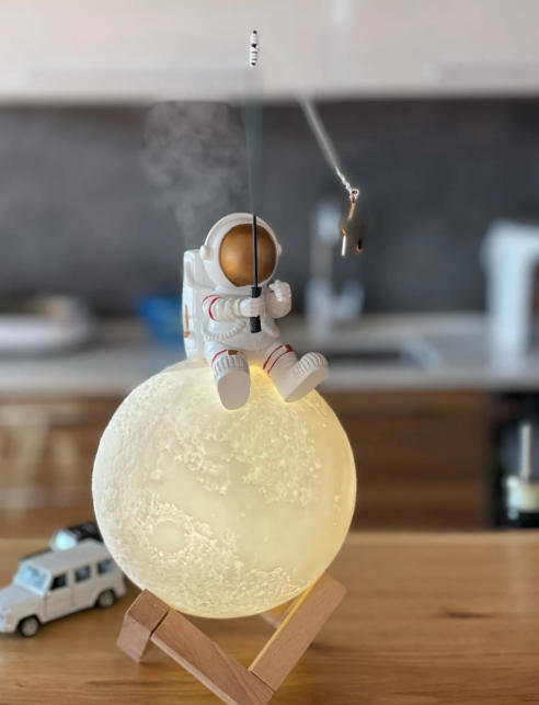 გაამდიდრე შენი სივრცე ასტრონავტის მთვარის ტენიანობის აპარატით. შექმნილია ჰაერის გასაუმჯობესებლად და სიმშვიდის მოსატანად. ასტრონავტი, რომელიც ზის განათებულ მთვარეზე, ქმნის ჯადოსნურ გარემოს და გეხმარება დასვენებაში, ძილში ან სწავლაში.