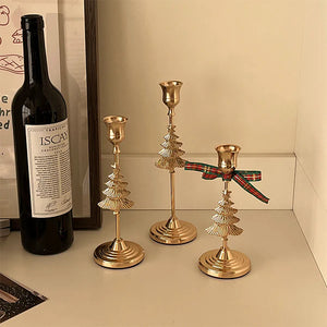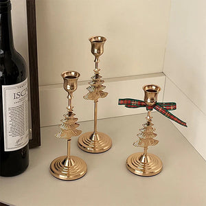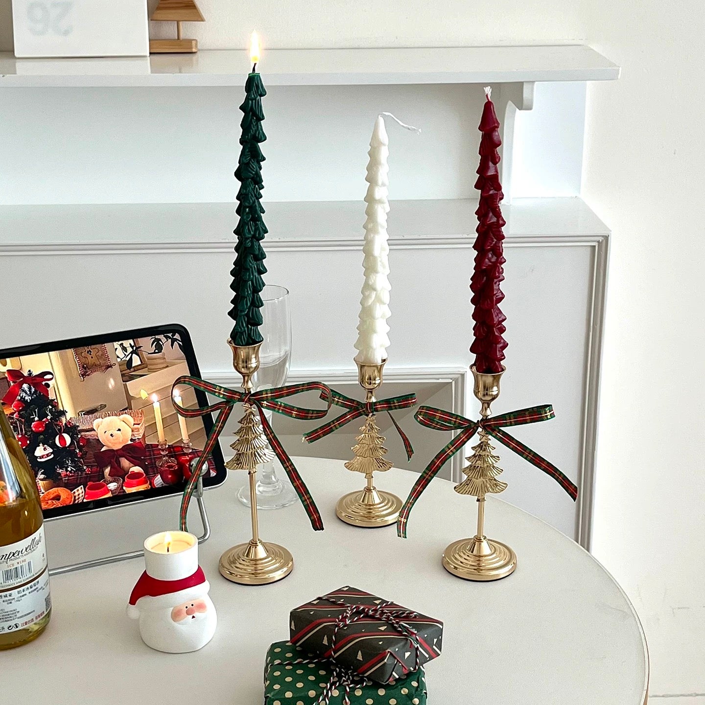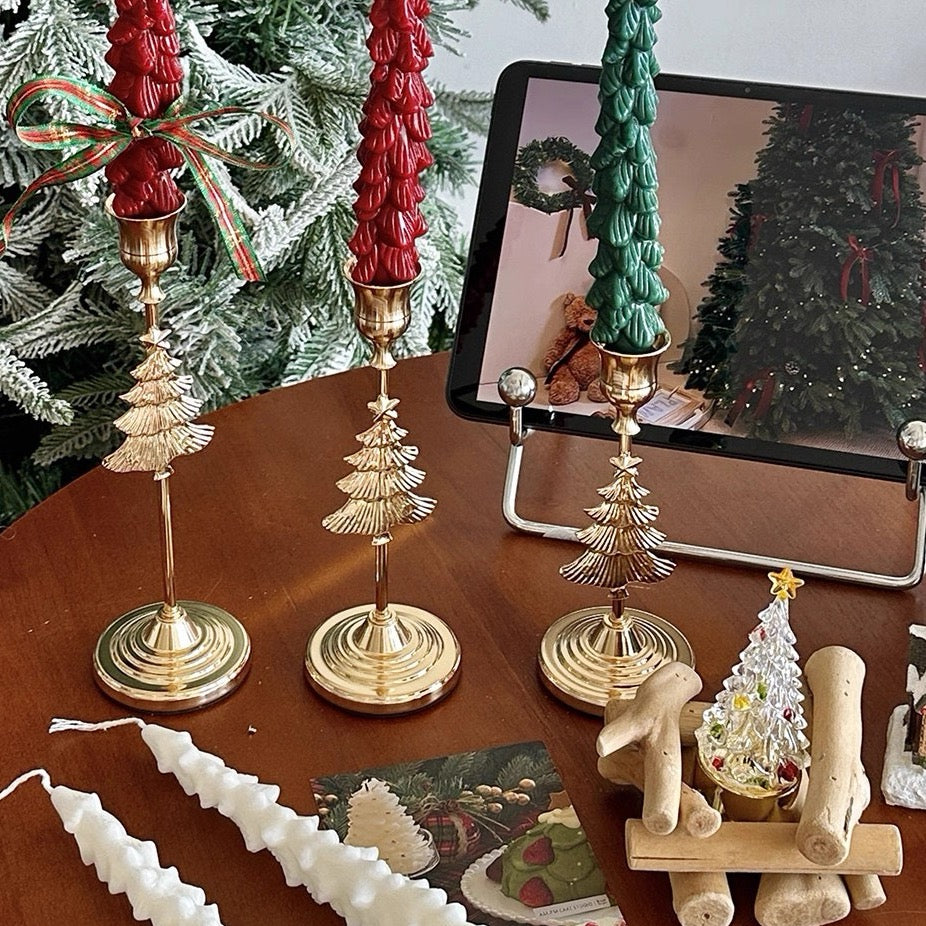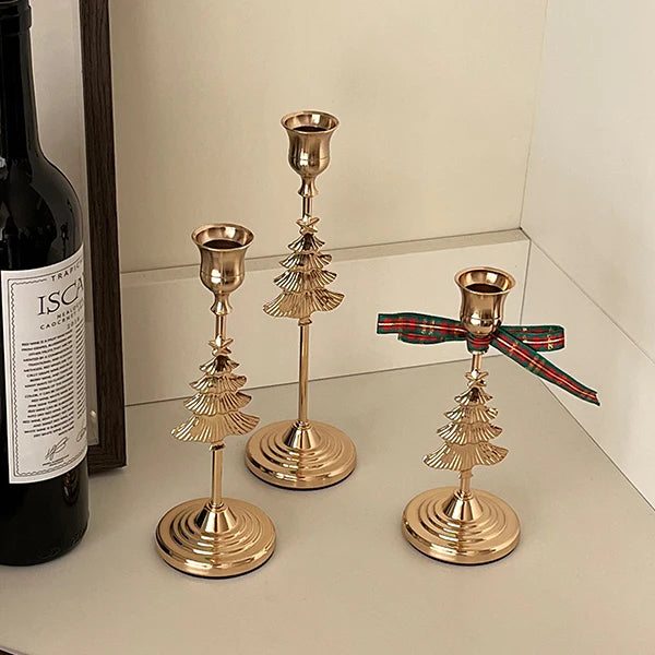 ოქროსფერი საშობაო მინის ხის სანთლების დამჭერის ნაკრები – სახლის დეკორი