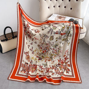 Soft Silk - Cotton Printed Square Scarf, 90 x 90cm